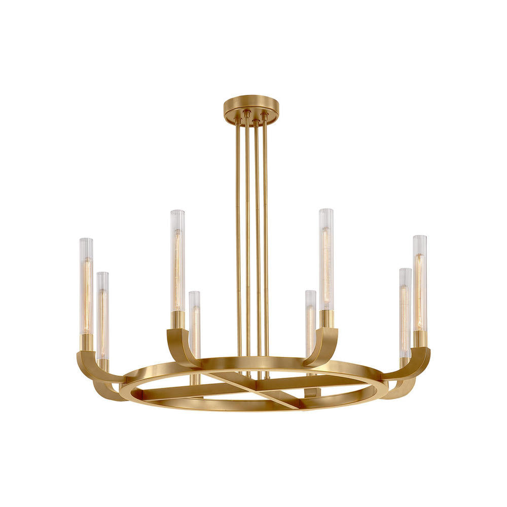 Alora Lighting FLUTE CH316008VBCR Chandelier Traditional - Brass. Celebration Is One Of The Universal Languages We All Speak Reminiscent Of A Champagne Glass Flute Features Ribbed Glass Tubes That Are Set Upon Softly Curved Arms And A Sophisticated Fixture Frame A True Celebration Of Style Available In Polished Nickel Urban Bronze And Vintage Brass Alora Lighting MPN: CH316008VBCR