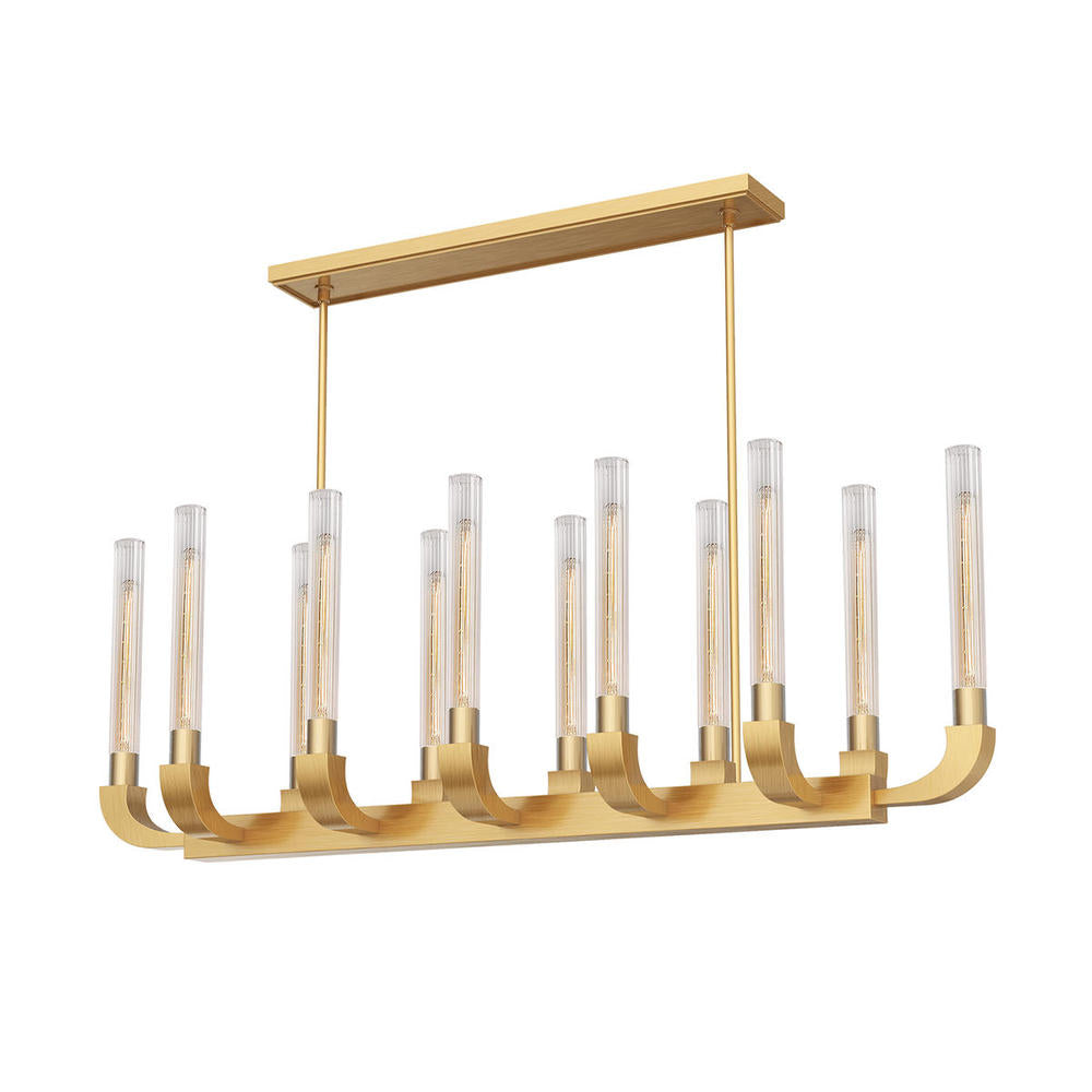 Alora Lighting FLUTE LP316012VBCR Island Traditional - Ribbed Glass Vintage Brass. Celebration Is One Of The Universal Languages We All Speak Reminiscent Of A Champagne Glass Flute Features Ribbed Glass Tubes That Are Set Upon Softly Curved Arms And A Sophisticated Fixture Frame A True Celebration Of Style Available In Polished Nickel Urban Bronze And Vintage Brass Alora Lighting MPN: LP316012VBCR