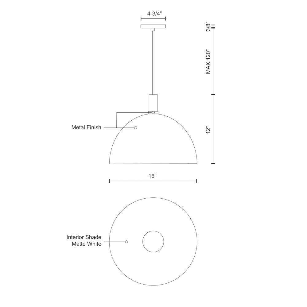The Kuzco Lighting Archibald 16-in Black with Gold Detail 1 Light Pendant is an elegant choice for your lighting needs. Designed with a single lamp, this pendant features an aluminum dome shade that showcases stunning black powder-coated or plated finishes complemented by striking metal details and a matte white interior.
