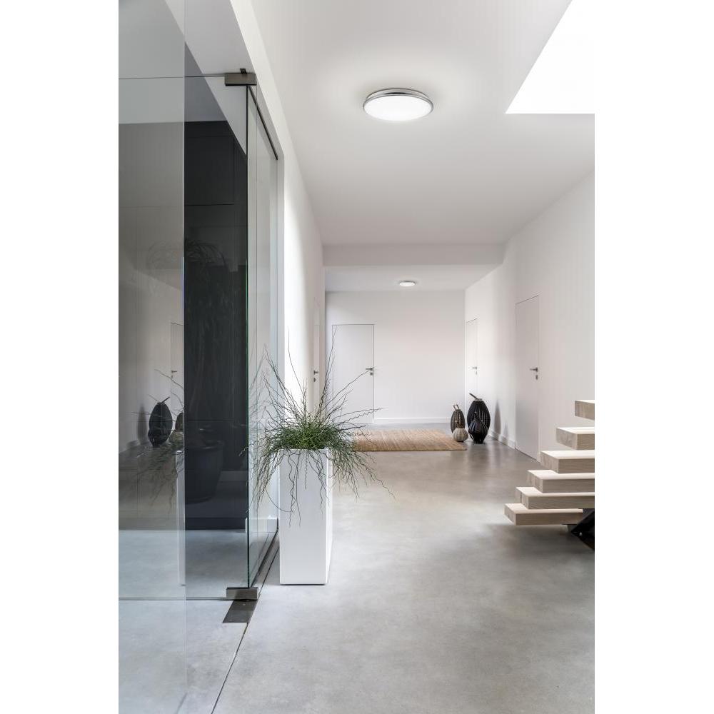 Description: The Kuzco Brook 15-in Chrome LED Flush Mount features a 30W watt circular steel base with a polymeric body and a frosted acrylic lens. This modern fixture is an excellent addition to any room.