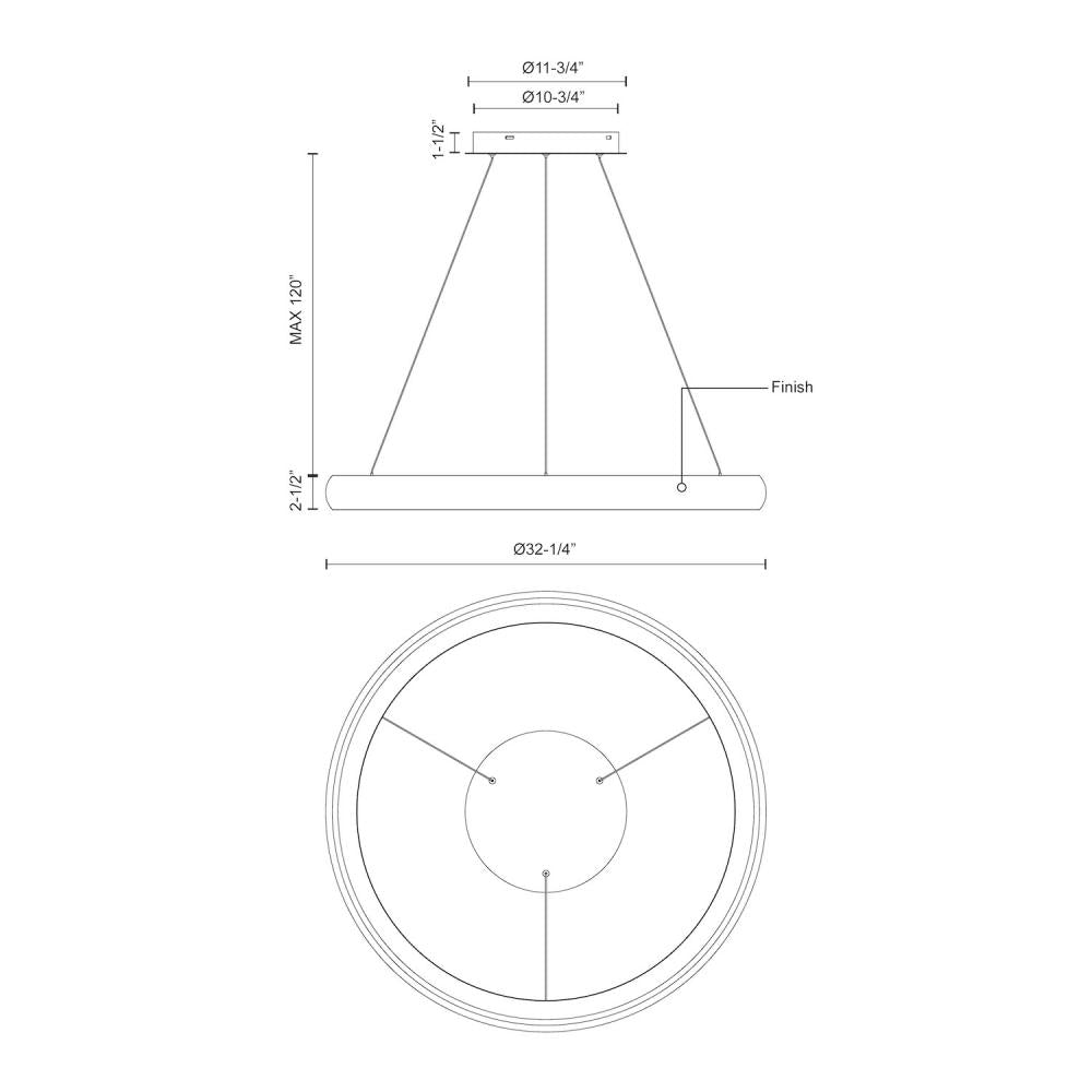 The Kuzco Cortana 32-in White LED Pendant light fixture showcases a modern design that combines functionality and elegance. This pendant features a curved band made of powder-coated aluminum that arcs around a central void, encapsulating an illuminated ring.
