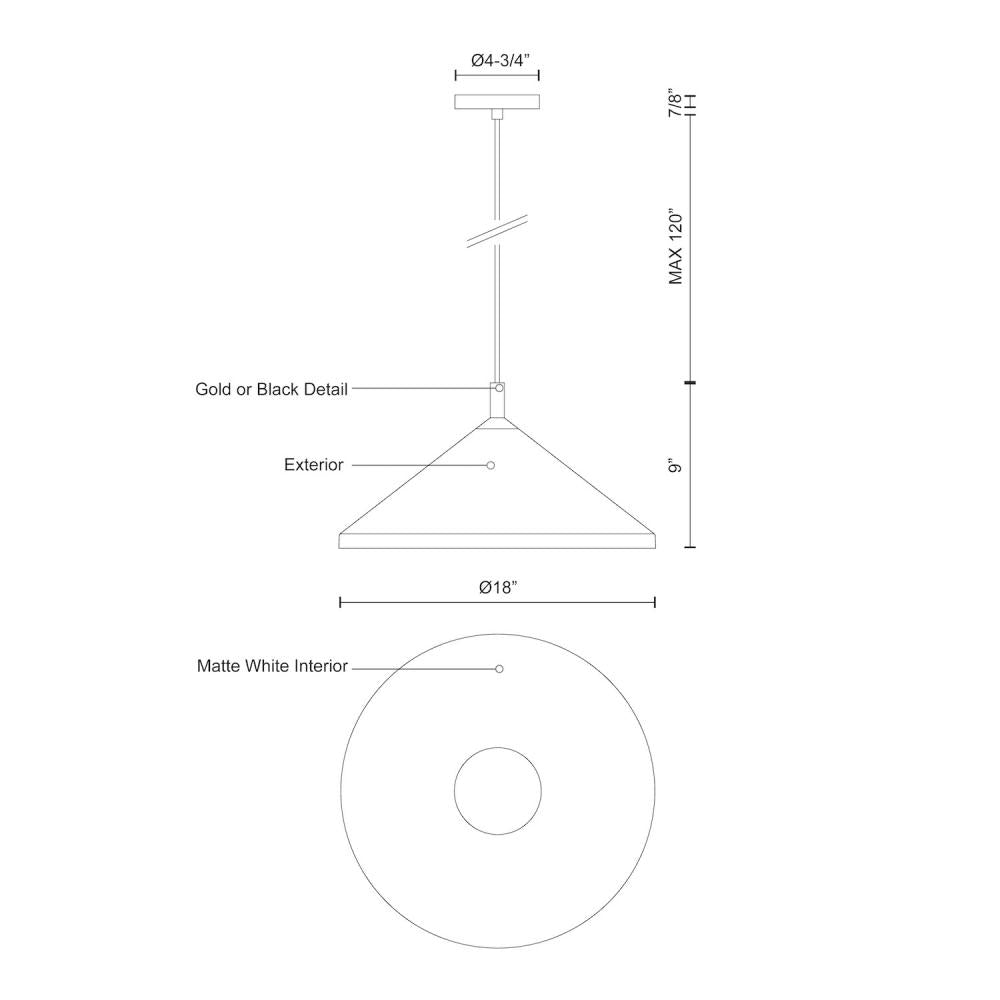 The Dorothy 18-in Pendant from Kuzco Lighting features a stylish design with a conical aluminum shade in a beautiful white finish with gold detail.