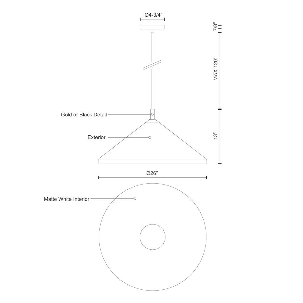 Kuzco Lighting presents the Dorothy 26-in Pendant light, featuring a stylish brushed nickel finish with black detail. This single lamp pendant includes a conical aluminum shade that is offered in fine powder-coated or plated finishes with a contrasting finial.