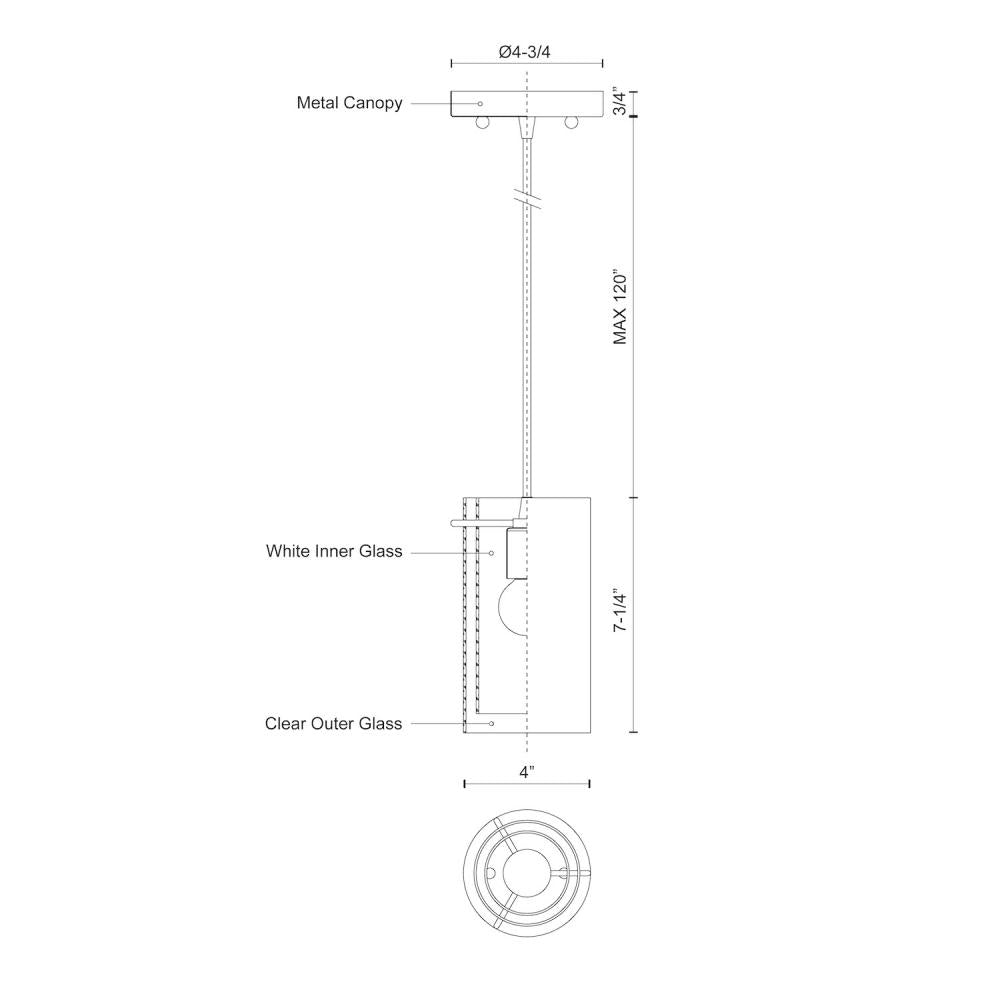 Kuzco presents the Firenze 4-in White 1 Light Pendant. This elegant pendant light features a single lamp with a white cylinder glass and an opal inner cylinder glass, complemented by brushed nickel details.