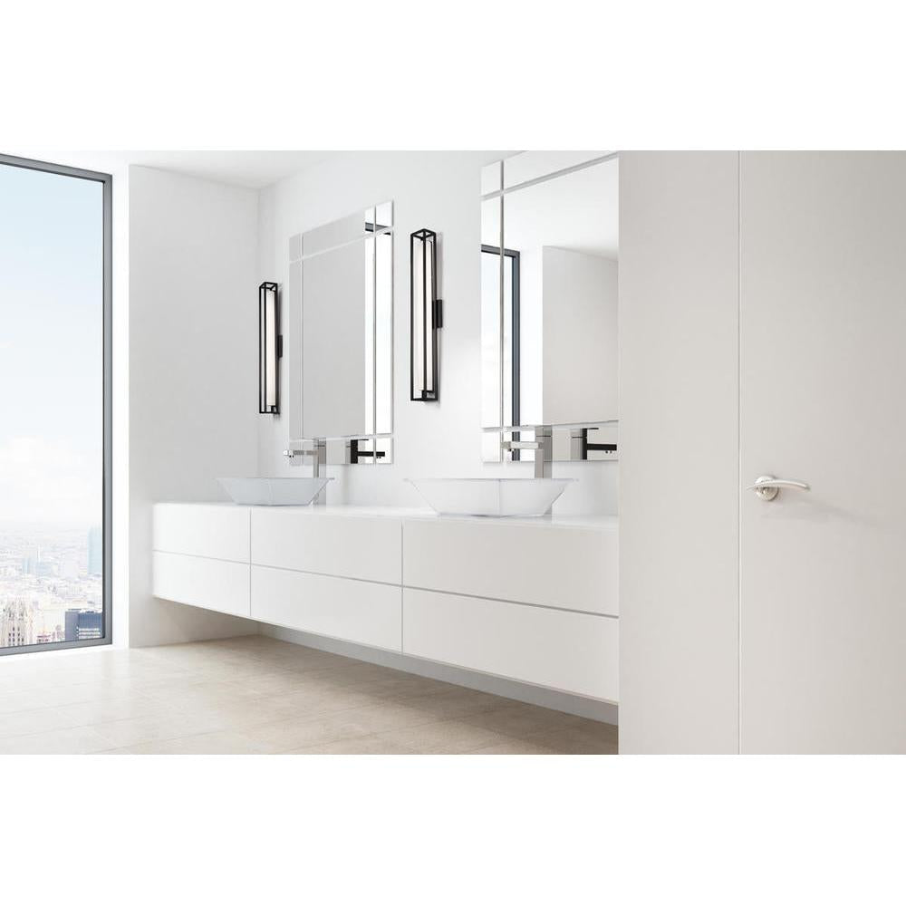 The Kuzco Lochwood 27-in Black LED Wall Sconce features a modern design with a 31W watt output. It consists of a square powder-coated steel frame and an extruded aluminum heatsink mounted to a square wall plate, providing durability and elegance.