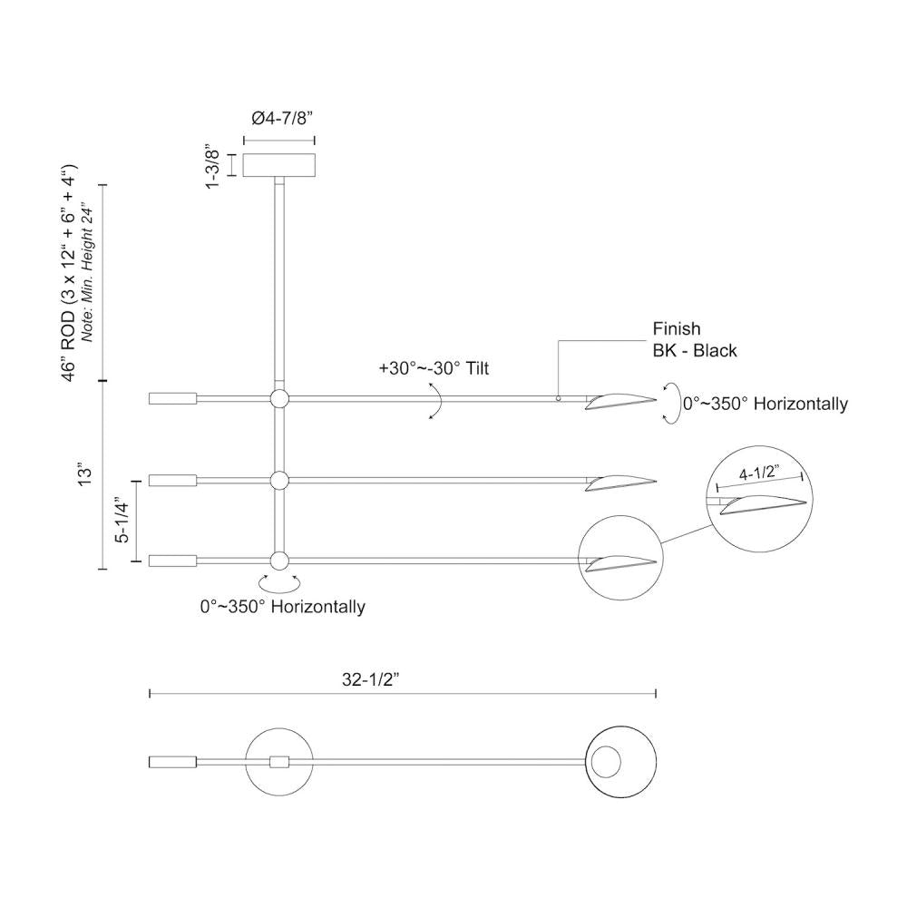 Kuzco Rotaire CH90132-BK LED Chandelier, 21W, Black