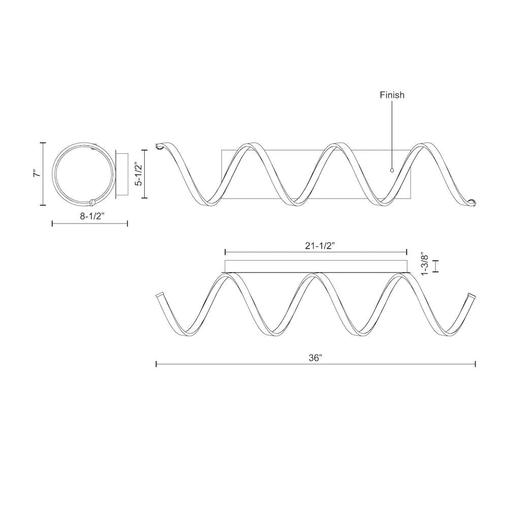 Kuzco Synergy 36-in Antique Silver LED Wall Sconce. 47W Watt, a looping radiant line casts light across space in a continuous helical path. The Synergy series is characterized by the rolled rectangular extrusion, which emits soft light through the silicon opal lens.