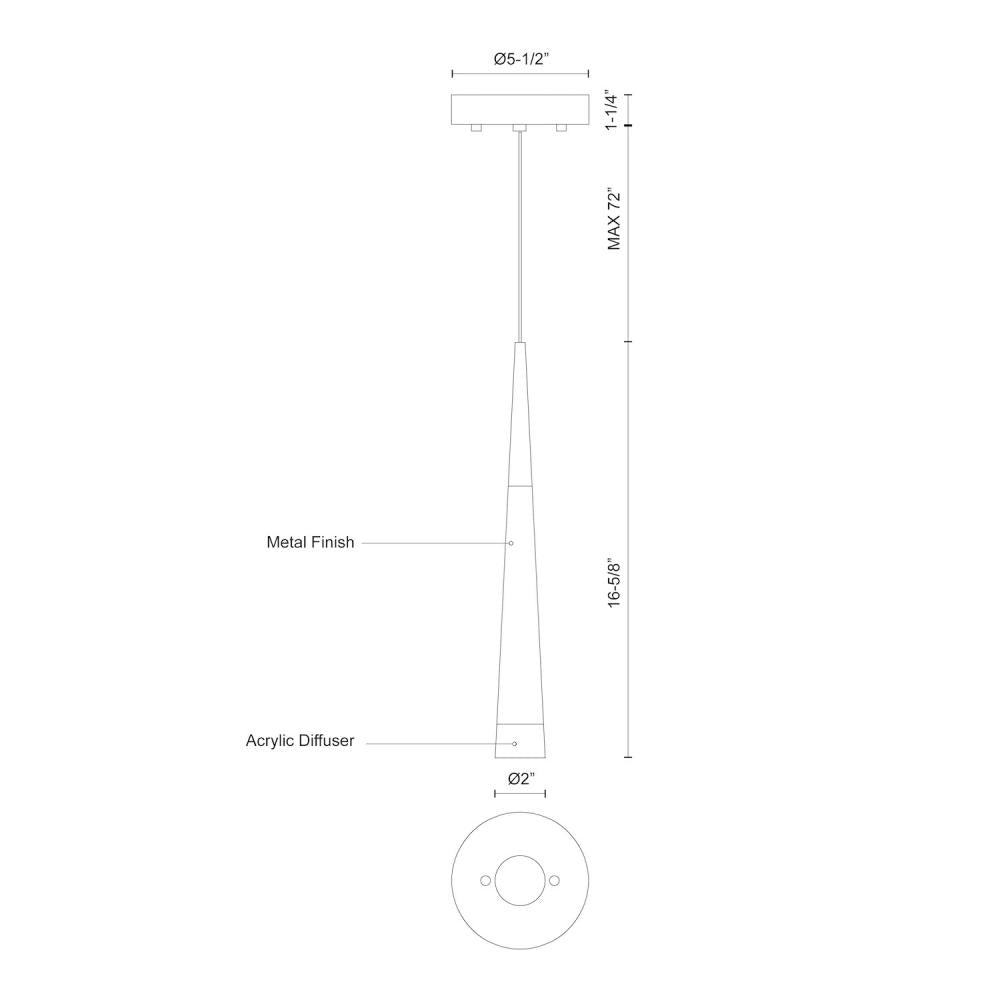 The Kuzco Ultra 2-in Chrome LED Pendant is a stylish addition to any space. It features a 6W watt, single LED lamp design with a slender cone-shaped cylinder. The pendant is equipped with acrylic top and bottom, lighting up on both ends. This fixture employs powerful 120V AC LED technology for optimal illumination.