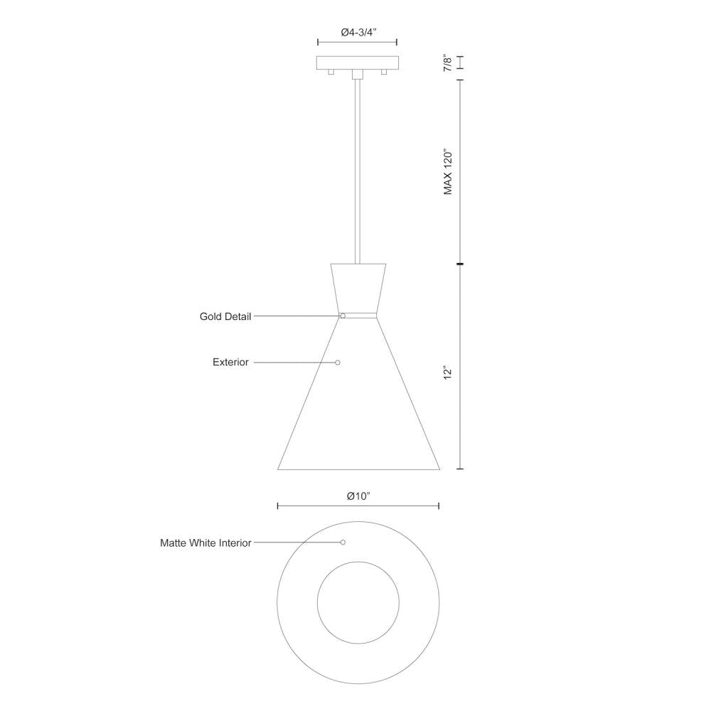Kuzco Lighting 493210-WH/GD Pendant, 10-in, White with Gold Detail