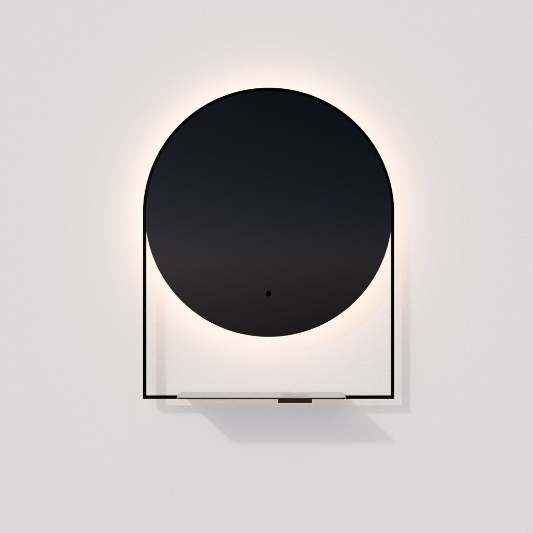 Oxygen CASSIOPEA 3-1801-15 Round Lighted LED Vanity Mirror with Wireless Phone Charger for designer bathrooms. Elevate your luxury bathroom ambiance with the Cassiopea Lighted Mirror, a masterpiece of Italian design. This round mirror offers style and functionality, featuring ambient backlighting and an integrated shelf. The backlighting creates a serene atmosphere, while the wireless phone charger and spacious shelf keep your space organized. The intuitive IR sensor allows you to adjust the backlight color temperature from 3000K to 6000K. The built-in defogger ensures clear visibility even in steamy conditions. Transform your bathroom into a sanctuary with the Cassiopea Lighted Mirror, where luxury meets convenience. Oxygen CASSIOPEA MPN 3-1801-15