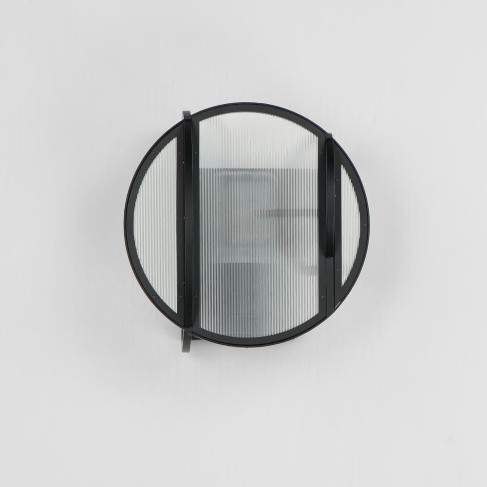 Studio M CRUX SM21321CRBK Exterior - Black. Crossing Planes Of Ribbed Glass Panels Are Asymmetrically Arranged Along A Rod Framed In Thin Matte Black Iron The Tubular Bulbs Suspended From Various Heights Are Obscured By The Glass Texture Creating A Shimmering Show Of Ambient Illumination The Simple Circular And Arcing Shapes Are Stitched Together In An Interesting Industrial Glass Texture Structure That Echoes The Internal Light Patterns The Design Like Bound Glass And Orb Lighting Pendants Manages To Convey Retro Vibes In A Modern Daring And Transitional Form Also Available In Complementary Sconce With Geometric Appeal Studio M MPN: SM21321CRBK