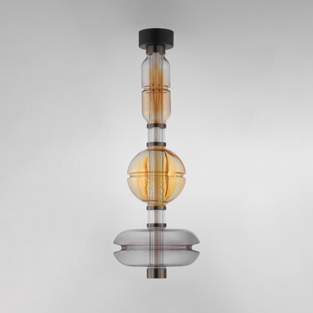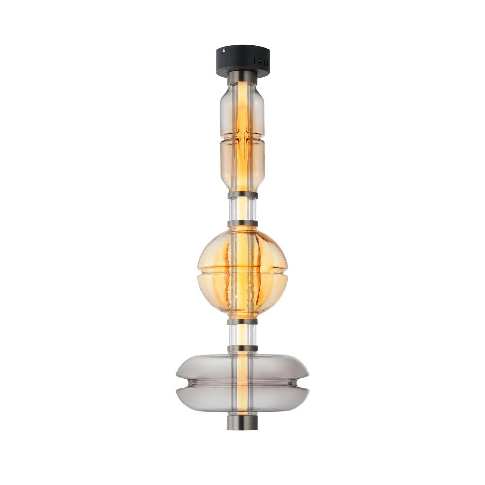 Studio M GUSTO SM18594GM Semi Flush Mt - Gunmetal. Futuristic And Full Of Gusto The Capsule Collection Designed By Cesar Giraldo Features Artisanal Hand Blown Glass Elements Colored In Cloud Like White Infused Glass Or Gradients Of Smoked Grey And Warm Amber Tones The Glasses 39 Hand Crafted Dimples Refract Dedicated Led Lighting That Highlights An Undulating Silhouette Throughout The Fixture Diffused Evenly Across A Thin Tube Of White Acrylic Encased Within A Larger Vacuum Of Clear Glass The Airy Compositions Appear To Be Floating While Amply Filling Spaces Configurations Include Both Horizontal And Linear Pendants Ceiling Mounts Wall Sconces And Portable Lamps Sized For Multiple Applications Available In Metal Accents Finished In Gunmetal Or Gold Studio M MPN: SM18594GM