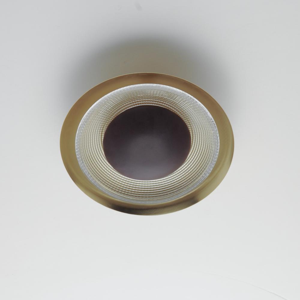 Studio M PRISMATIC SM81860CRNAB Flush Mount Traditional - Natural Aged Brass. Somewhat Recessed Within A Classic Mid Century Metal Shade A Secondary Thick Glass Shade Pressed With Prismatic Patterns Casts An Iridescent Light The Dedicated Led Light Source Is Concealed To Reduce Glare While Providing Ample Lighting Choose From Large Thin Profiled Cymbals Of Brass With Dark Brown Leather Accents Or Midnight Black Metalwork With Black Pebbled Leather Wraps Stitched Onto The Frame The Prismatic Series Of Pendants Low Profile Surface Mounts And Portable Lamps Incorporate Advanced Led Technology A Convenient Touch Dimmer On The Base Of The Portable Lamps Features 3 Step Dimming Allowing You To Control The Light Settings For Ambient Or Functional Uses Studio M MPN: SM81860CRNAB